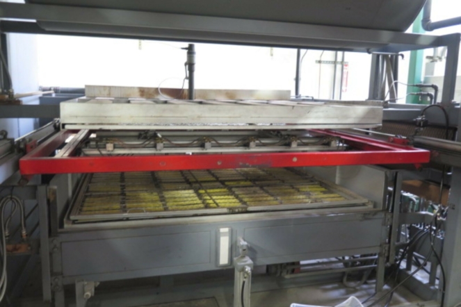 Used 2000 MAAC 54SP型是一种最大模具尺寸为60“x 48”的单工位压力成型机,配有电动压盘(顶部行程50“/底部行程50”)。陶瓷上烤箱和陶瓷下烤箱,有70个独立的烤箱区域(每个烤箱的一半有35个区域)。附加功能包括:烤箱中的红外线眼、烤箱中的安全/下垂眼、下压板坑、冷却风扇和出口。