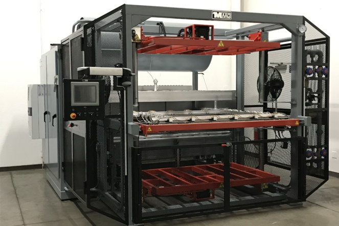 MAAC机器的“库存”彗星型号C64S是一个72“x 48”的最大模具尺寸,单工位热成型机配备变速可编程压板(32“冲程顶/27”冲程底),石英上和石英下烤箱和电动片车指数。其他功能包括艾伦布拉德利PLC控制,可调夹具框架,46个独立的烤箱区域(23个区域每烤箱一半),红外高温计在上烤箱,安全/跌落眼在下烤箱,空气和真空记忆定位阀,超大真空罐,高速冷却风扇和空调电气外壳。